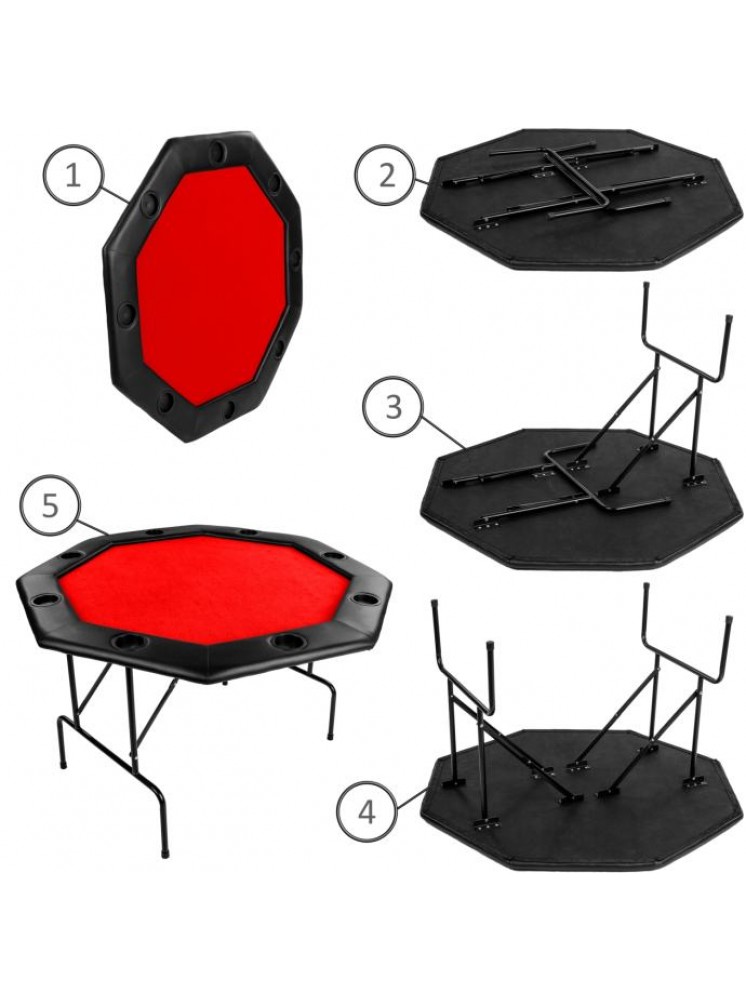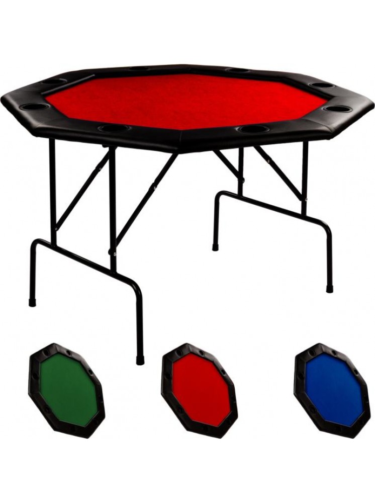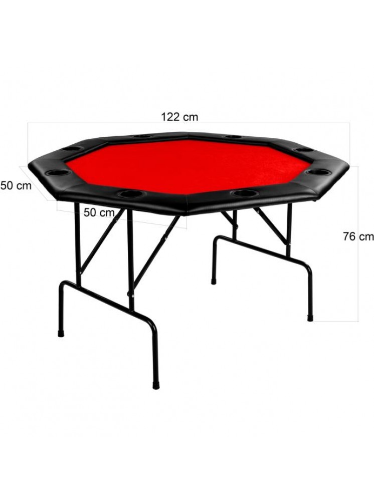 GAMES PLANET® Osmerokutni poker stol dimenzija 120x120x76cm za do 8 igrača pokera, tkanina zelene boje