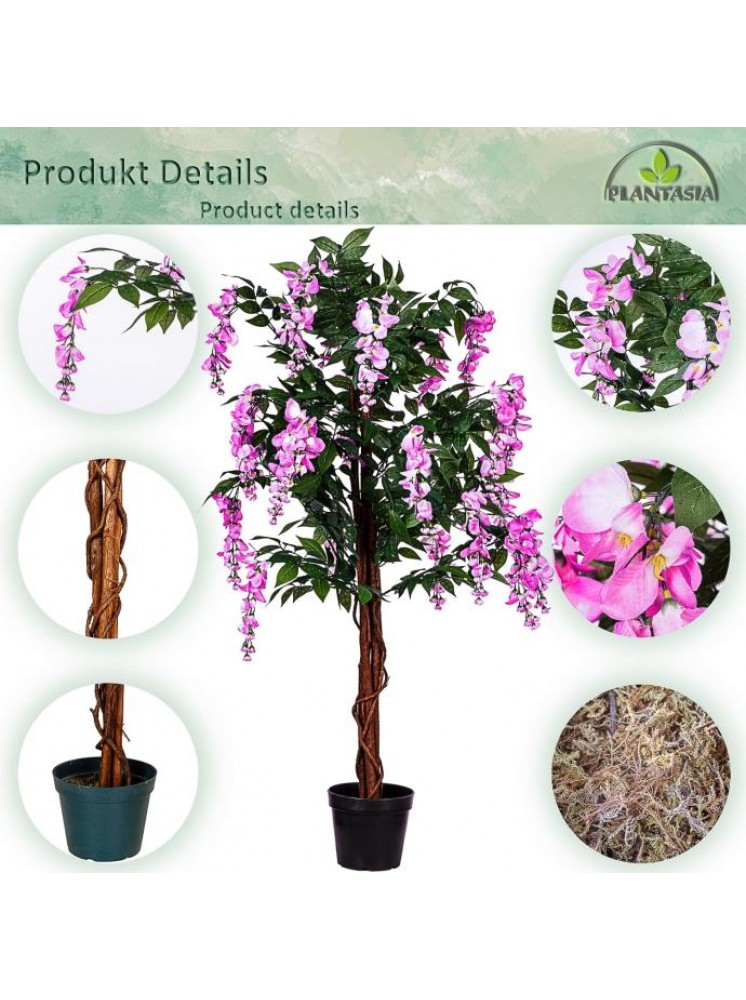 Umjetna glicinija visoka je 120 cm i ima autentično ukorijenjeno deblo s cca 756 listova i 24 cvjetne vitice
