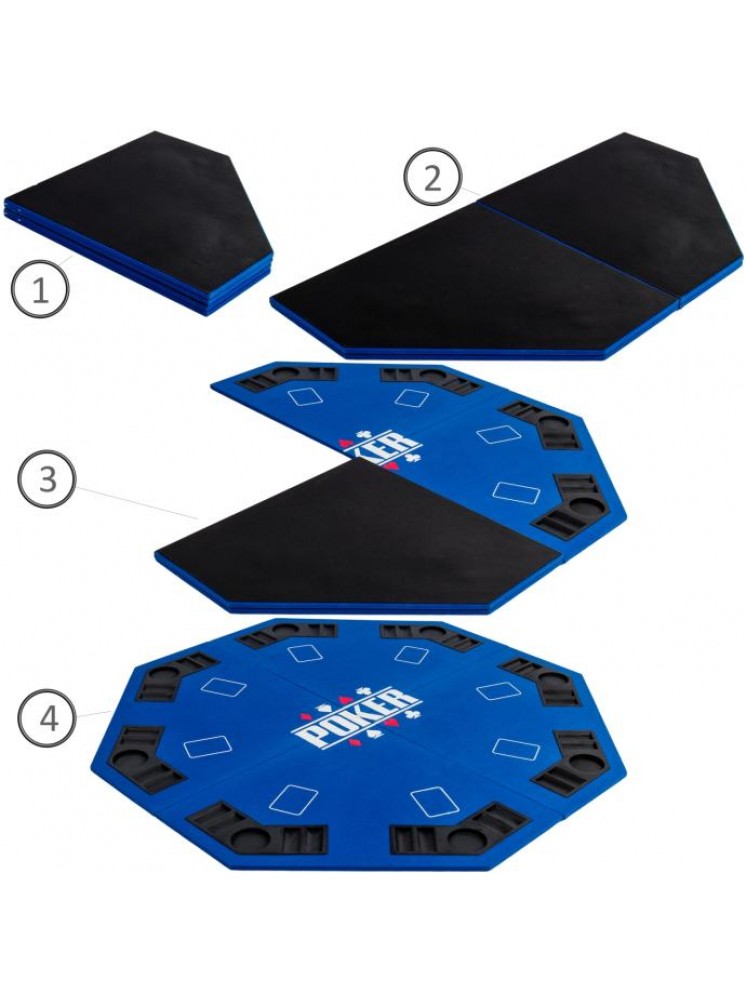 Gornji dio stola za poker može se brzo sklopiti i uštedjeti prostor (sklopi se dva puta na samo 60x60 cm)